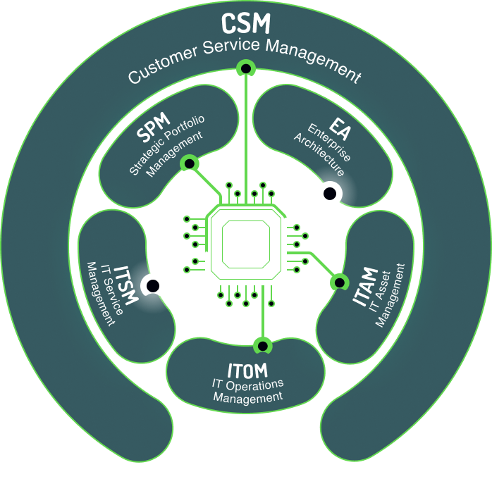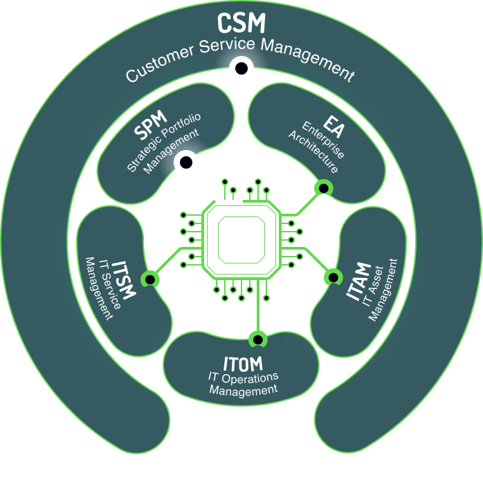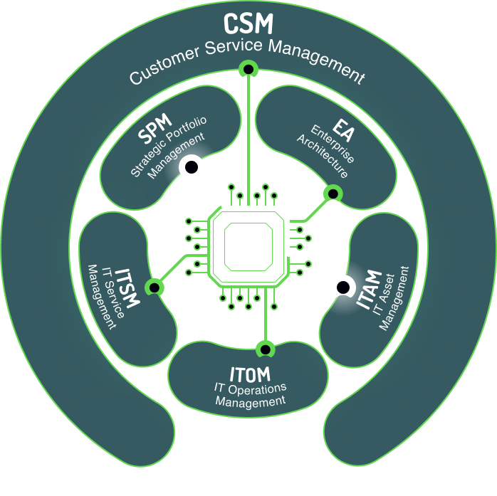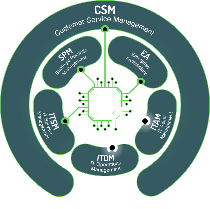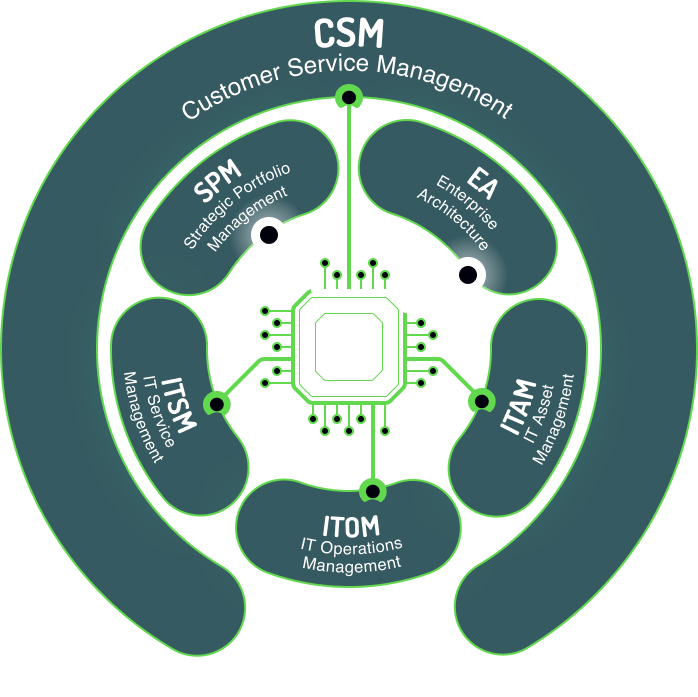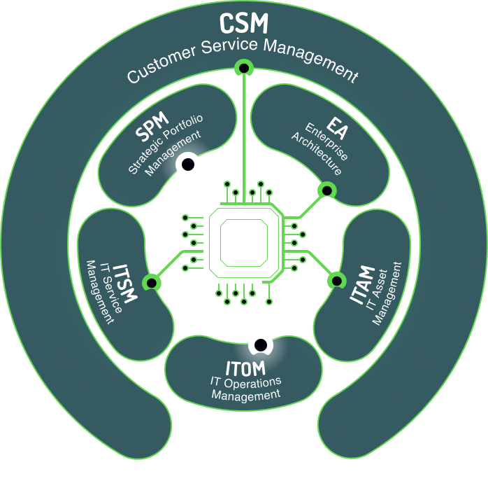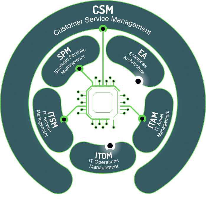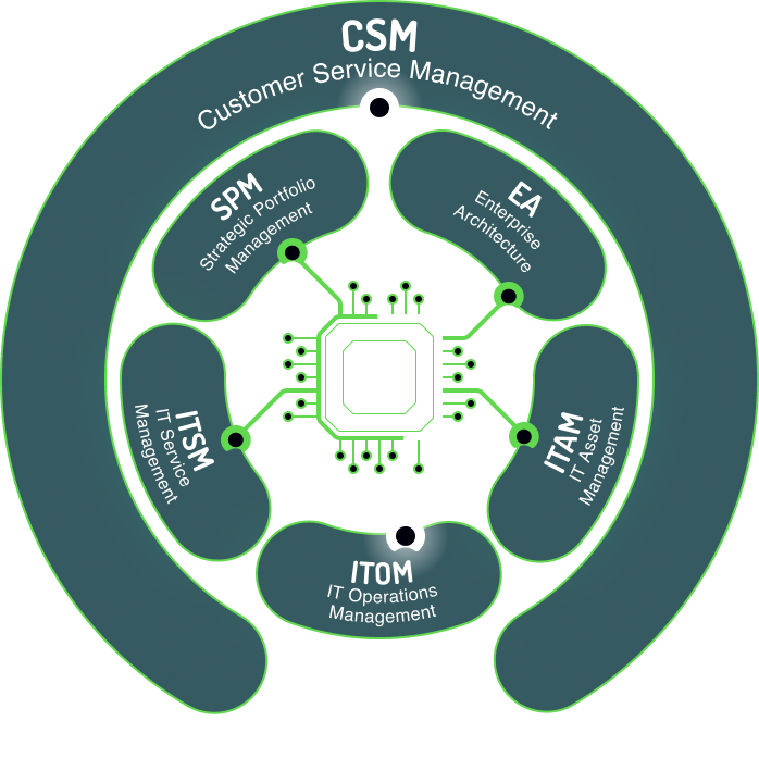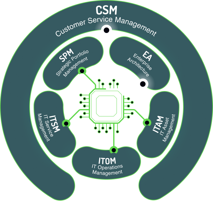 Customer Service Management (CSM) + Sales & Order Management (SOM) + Field Service Management (FSM) on One Data Model.